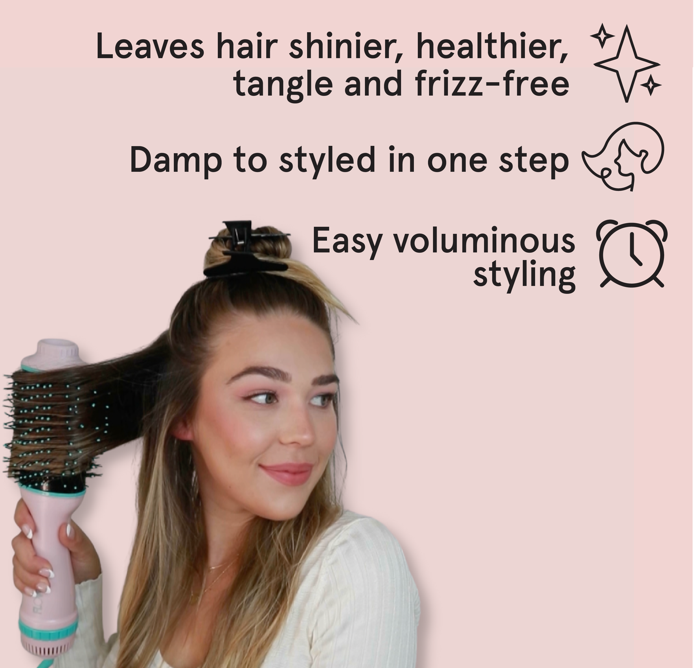 Isn't it Ionic!? This ionic hot air styling brush styles & dries with one simple step, so recreating your favorite salon blowout is now easier than ever. Simply wait until your hair is 85% air dried, and work in sections to dry your hair. Style with your heart - this tool is extremely versatile, so you can use it to add flips to the ends, soft waves, or just beautiful frizz-free shiny hair!